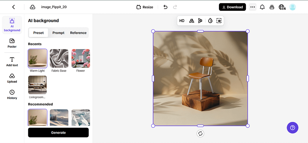 Every tone has a visual temperature. Pippit’s AI background feature lets you dial it up, switch it out, or remix it—right from your browser.