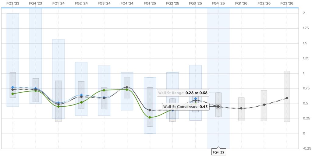 For Q4 2025, the Wall Street consensus is a gain of $0.45 per share.