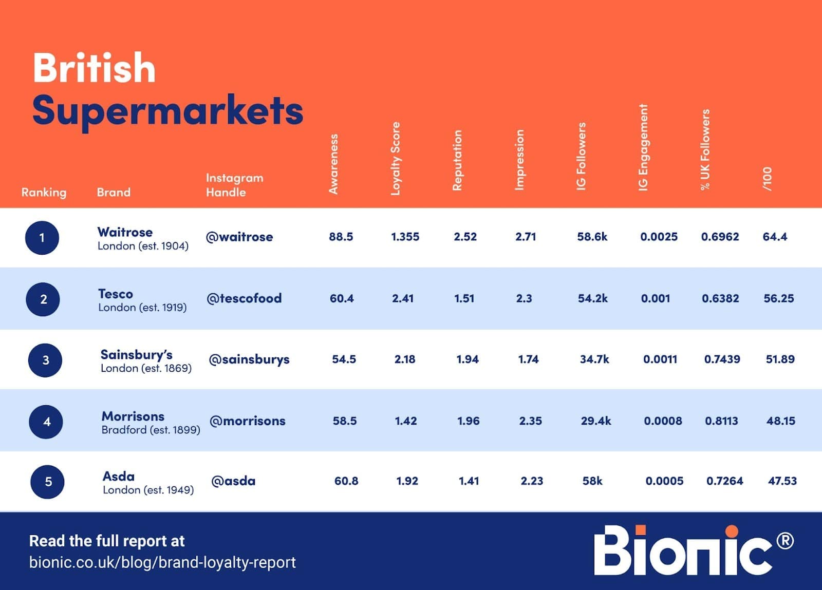 The small business experts at Bionic wanted to find out once and for all which British grocery chain tops the ranking when it comes to customer loyalty, by analysing metrics such as the YouGov BrandIndex, social media, and search demand data.